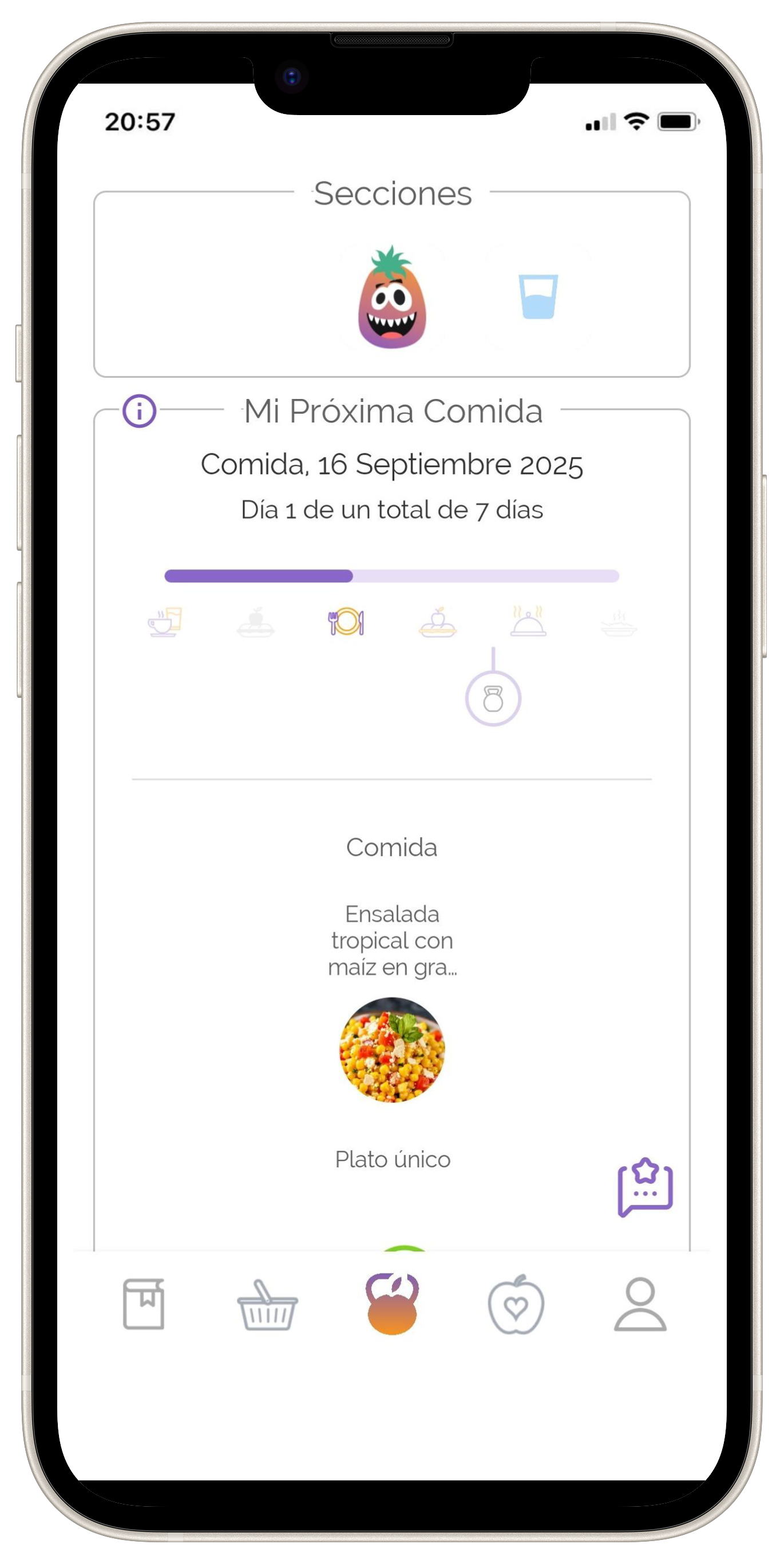 Activa y desactiva las comidas que no realices pulsando en cada una de ellas. Ten en cuenta que como mínimo tienes que tener 3 comidas activadas, siendo dos de ellas almuerzo y cena.cena.
